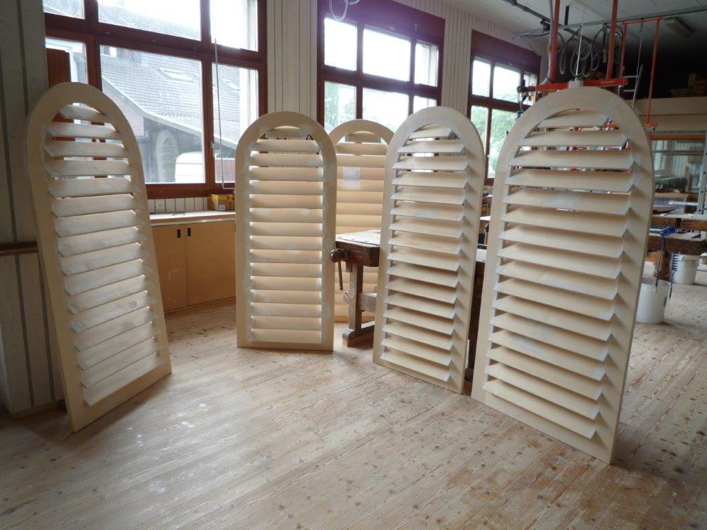Les volets peuvent être fournis en bois en en aluminium ; lamelles fixes ou mobiles, recevoir des panneaux dans leurs chassis.